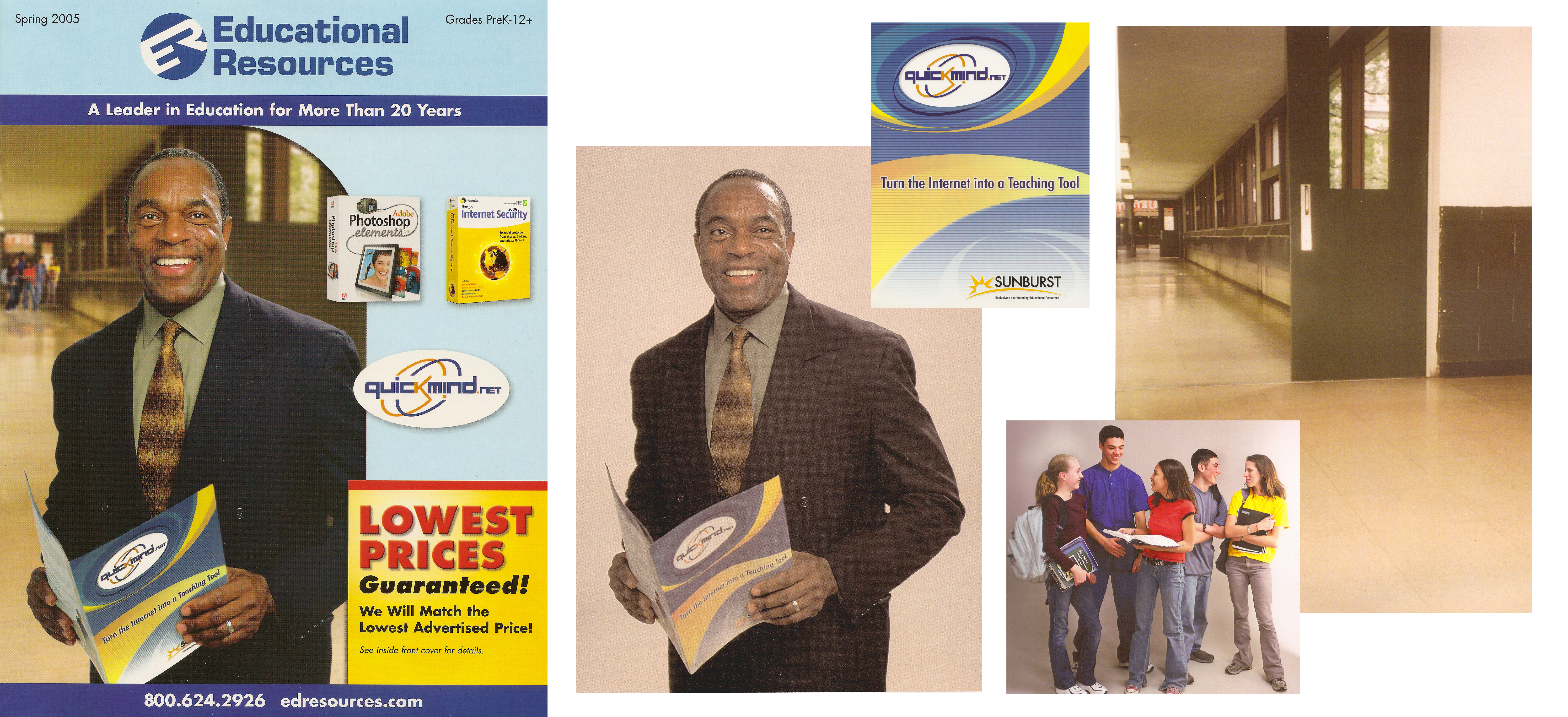 Photography Direction and Retouching: The image for the front cover of this catalog was a composite made up from four separate images. Extensive work was done on the model, including the straightening of right eye, removing hot spot from forehead, improving readability of brochure, and overall color correction.